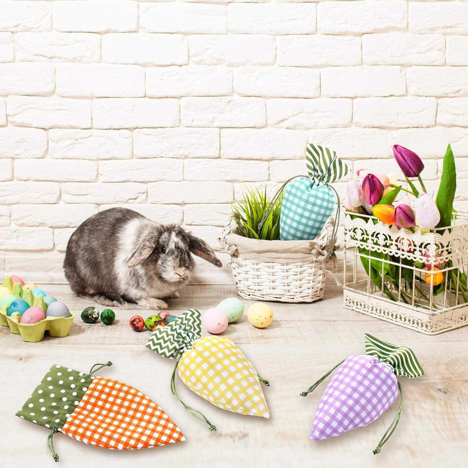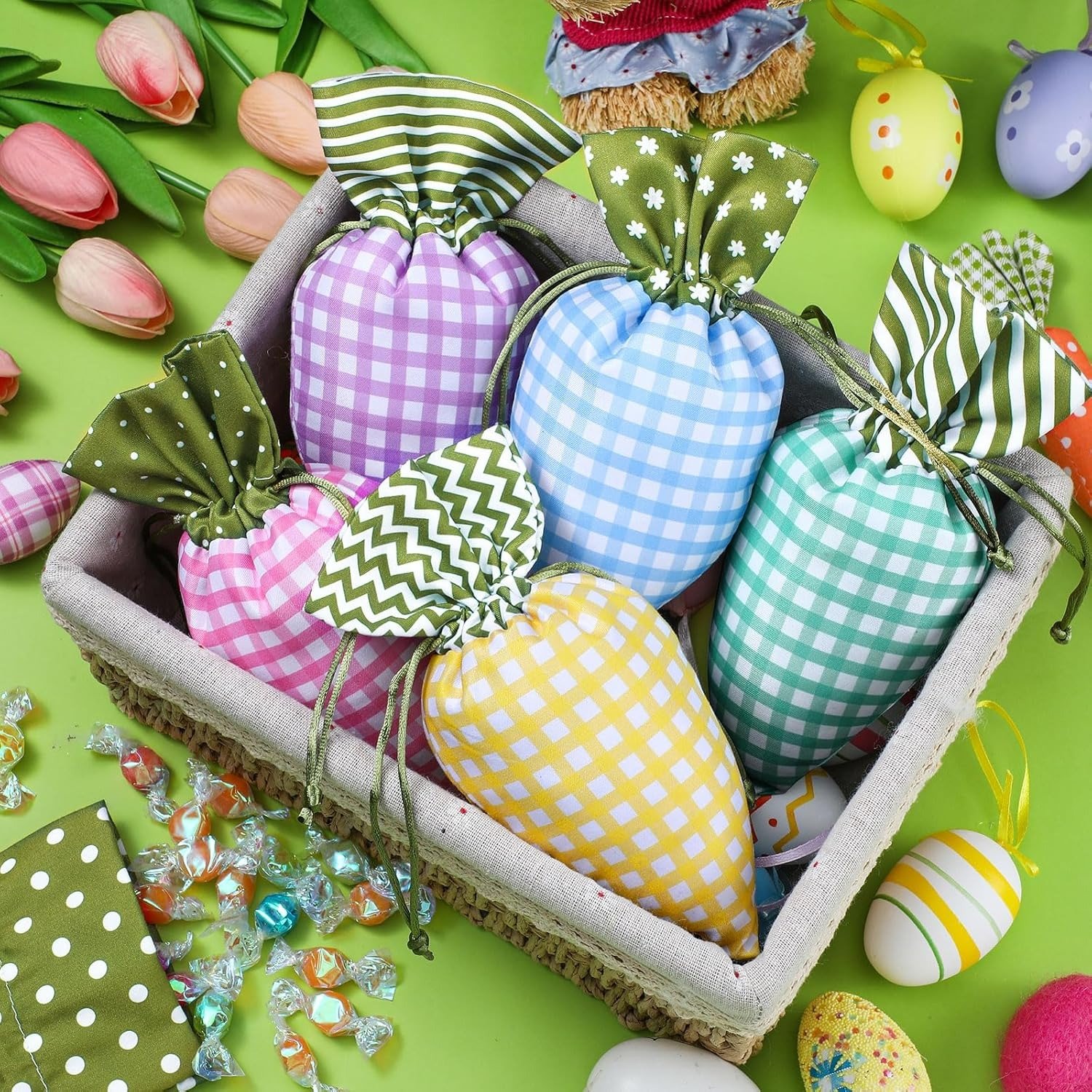 🎁8/12/24/28Pcs Easter Carrot Drawstring Bags, Candy Gift Bags for Party & Egg Hunt